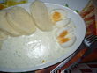 Do koprovky rozkvedláme 1-2 vejce, nebo dáme na talíř do porce celé či půlku vařeného, případně 1-2 natvrdo vařená vejce rozsekáme a přiměřeně rozdělíme na koprovku do talířů.