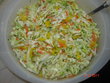 Zelí nakrájíme na nudličky a spaříme horkou vodou, žampiony nakrájíme na plátky a orestujeme na oleji. Cibuli a obě papriky nakrájíme na proužky a přidáme k zelí. Pak smícháme s prochladlými žampiony. Smícháme sojovou omáčku s trochou cukru a přisolíme podle chuti. Nalejeme na směs a dobře promícháme. Necháme alespoň 2 hodiny odležet.