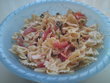 1 balení italských těstovin  | 1 lžíce olivového oleje  | 1 lžíce vinného octa  | 2 velká rajčata  | miska černých i/nebo zelených oliv  | 150 g uzené šunky  | 1 malá červená cibule  | pár snítek čerstvé bazalky  |  šťáva z 1 citronu